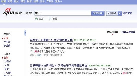 從去年將它的中國大陸服務撤離至香港以來,谷歌在中國搜索市場份額一路下滑,而谷歌在中國的主要競爭對手、中國第一大搜索服務供應商百度的市場份額一直在增長。新浪營銷中心副總經(jīng)理劉奇周一表示,新浪門戶網(wǎng)上的這一變化是因為新浪與谷歌合同到期。新浪網(wǎng)首頁上的搜索框現(xiàn)在使用自己的搜索技術,搜索范圍按照新聞、博客和音樂等進行分類。