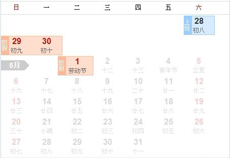 4月29日至5月1日放假3天,4月28日(周六)上班。