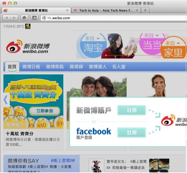 消息稱新浪微博在香港/臺灣打通Facebook賬號登陸