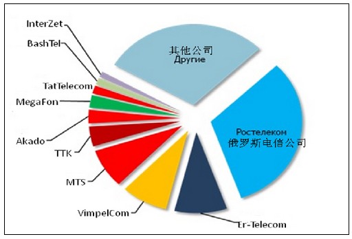 俄羅斯寬帶市場(chǎng)前五大巨頭公司分別是俄羅斯電信公司、Er-Telecom、VimpelCom、MTS和TTK公司。從2013年第二季度寬帶用戶(hù)接入數(shù)量上看,俄羅斯電信公司位居首位,全俄境內(nèi)寬帶接入數(shù)量達(dá)到894萬(wàn)。
