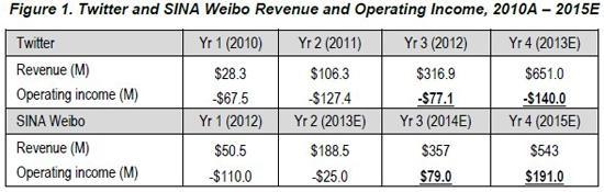 Twitter與新浪微博營收對比