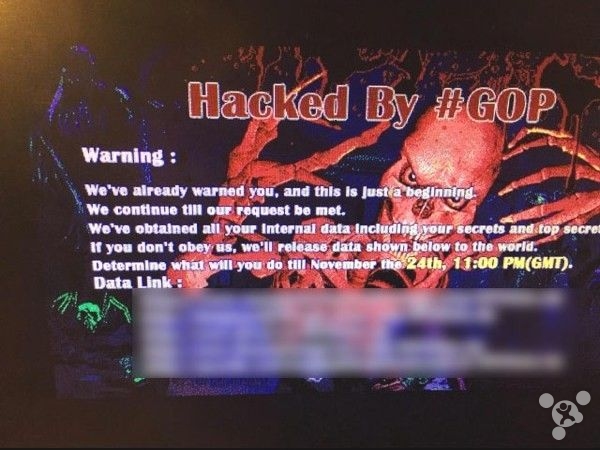 自稱 #GOP 的黑客同時恫嚇?biāo)髂嶂灰獫M足他們的要求,就會立刻停止攻擊,如果索尼在 11 月 24 日晚上 11 點(diǎn)前不滿足其要求,他們會將大量索尼的秘密數(shù)據(jù)以及未公布的電影資料公之于眾。