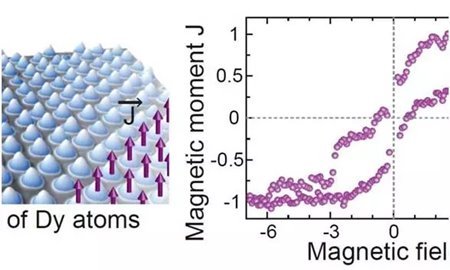 洛桑理工學院教授哈拉德·布魯尼帶領研究團隊在40K(零下233.15℃)低溫下,將金屬鏑原子沉積到金屬銥-石墨烯基底上,創造出具有穩定性的單原子存儲媒介。由于石墨烯與金屬銥之間具有晶格不匹配性,它們之間會形成云紋狀間隙,這種間隙性形狀導致鏑原子被吸附后,以每兩個原子相距2.5納米的平均距離排列成高度整齊的矩陣,這是新裝置保持磁性高度穩定的一大原因。