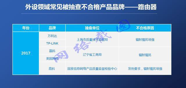 據(jù)最新一份報(bào)告《2018年度3·15數(shù)碼產(chǎn)品質(zhì)量關(guān)注度報(bào)告》,指出國內(nèi)最受歡迎的路由器不合格產(chǎn)品如下。